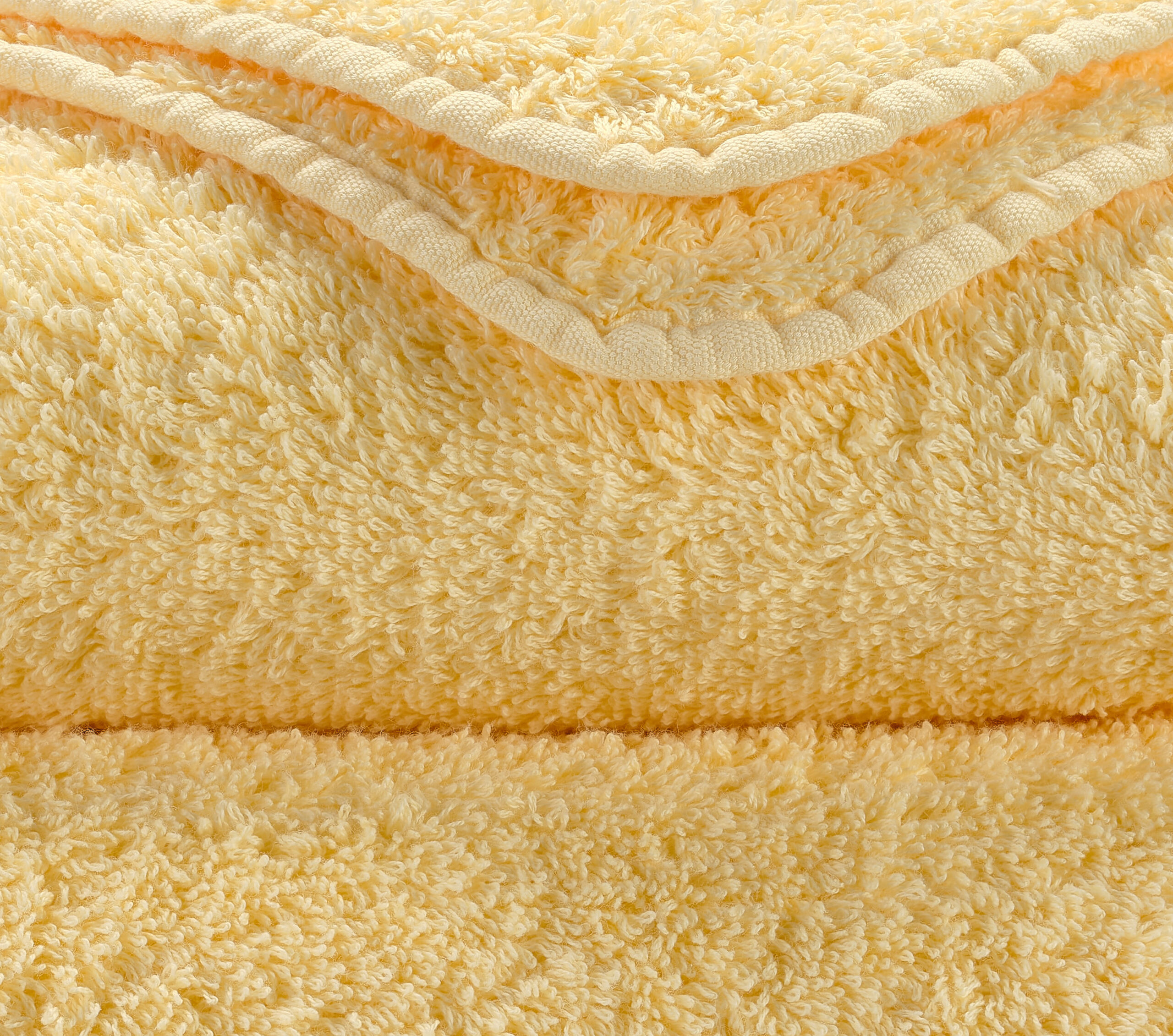 Abyss & Habidecor Super Pile 803 luxury cotton towels in soft yellow stacked